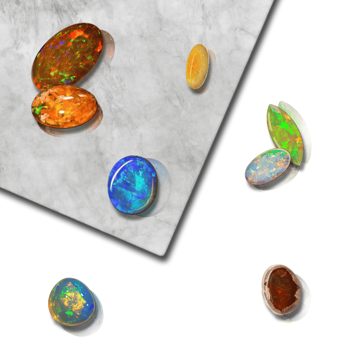 Ofrecemos ópalos en cantera, chicoteado, cabujón y facetado, pensados para adaptarse a los distintos procesos creativos de casas joyeras y diseñadores.
